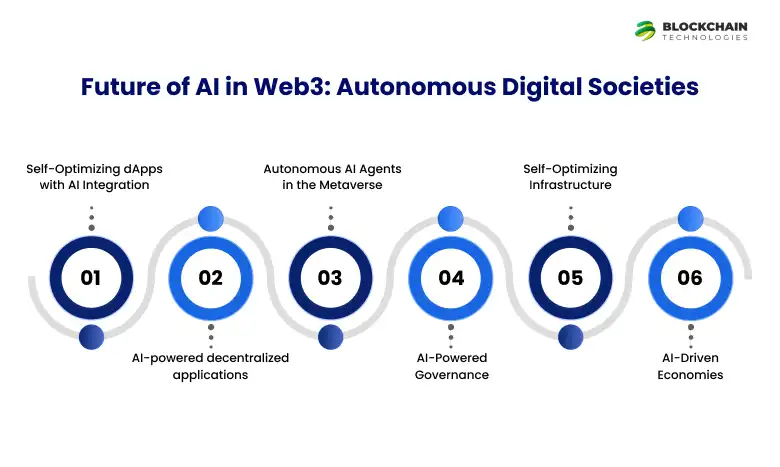 The fusion of AI in Web3 is steering us toward autonomous digital societies, self-managed ecosystems where decentralized AI and blockchain collaborate to govern resources, enforce rules, and innovate without central oversight. Here’s a snapshot: