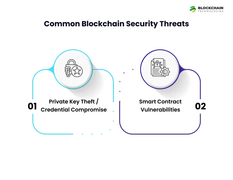 In short, blockchain threat vectors span technical vulnerabilities and operational vulnerabilities. Mitigation involves all these areas by means of a holistic security plan.