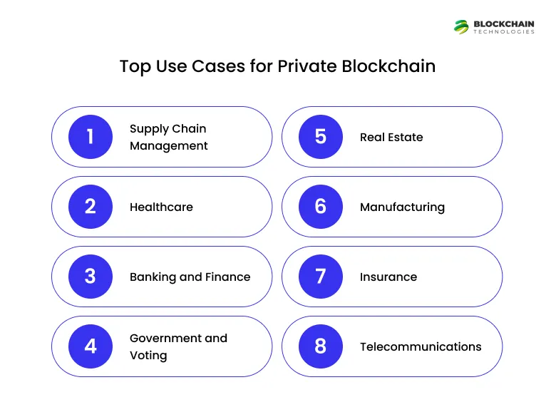 Where data privacy and process integrity are vital, private blockchains are best. Some interesting use cases include: