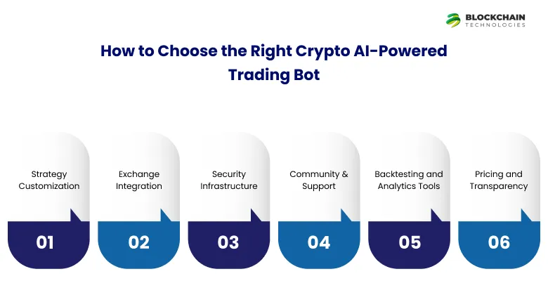 Choosing the perfect trading assistant is about aligning its capabilities with your investment strategy and risk tolerance. Here’s what to focus on when considering how to choose the right AI trading bot for crypto: