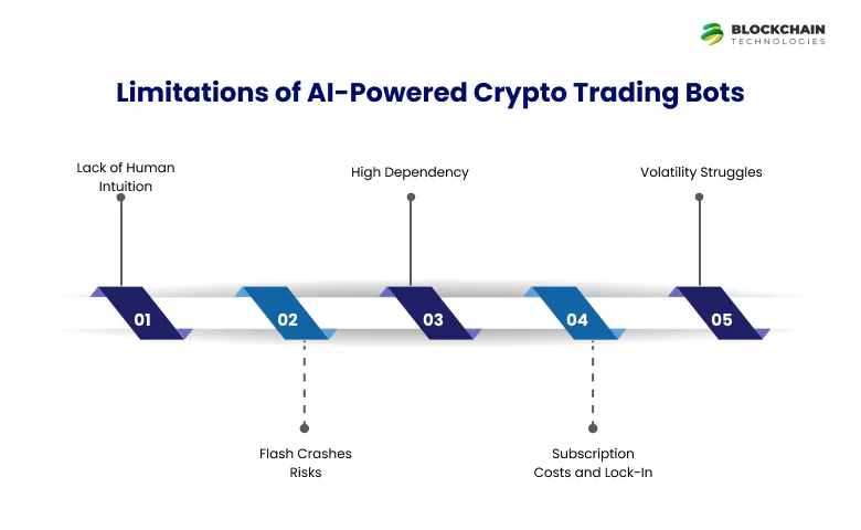 While AI crypto trading bots offer speed, precision, and automation, they’re not without flaws. Understanding the limitations of AI trading bots is essential before diving into full automation. Even the best crypto trading bots may struggle in unpredictable or extreme market conditions.