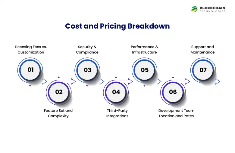 Costs typically range from $20,000 to $100,000+, based on features and security requirements. White-label solutions are more affordable than custom development, which can exceed $500,000.